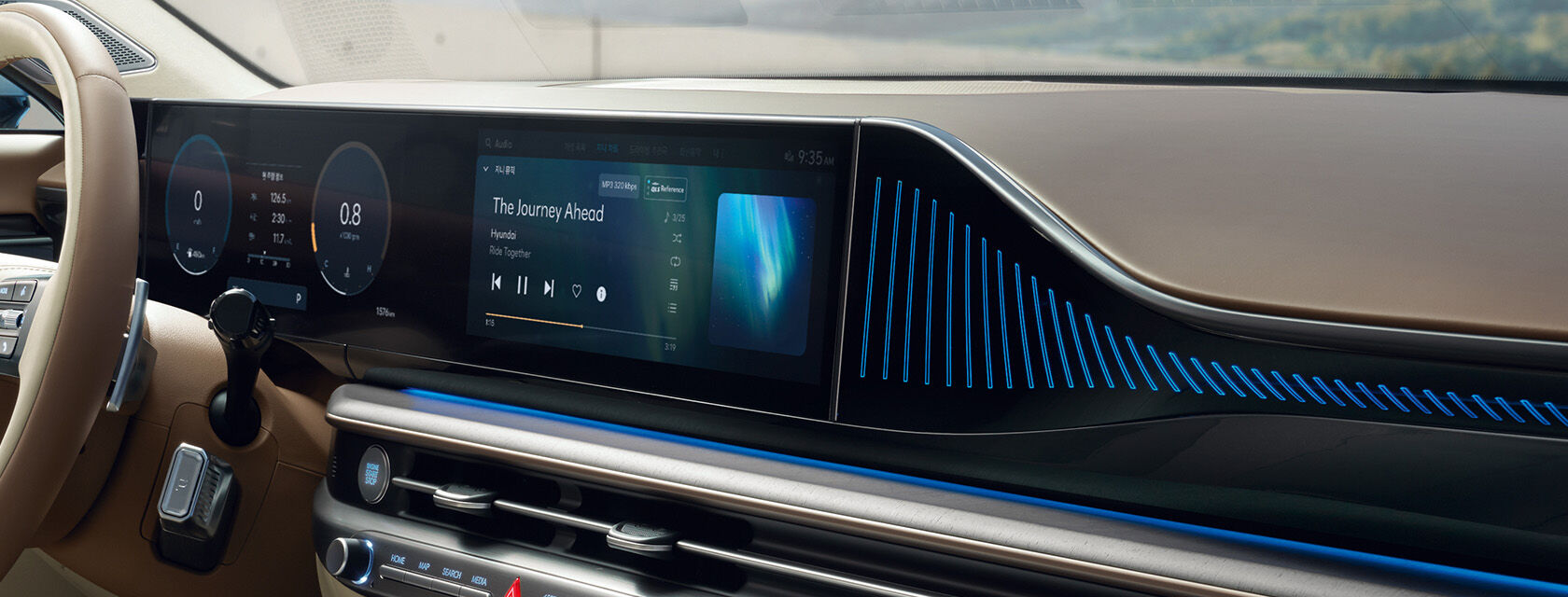 클러스터, 내비게이션, 헤드업 디스플레이 간 일체감있는 그래픽 테마를 구현합니다.