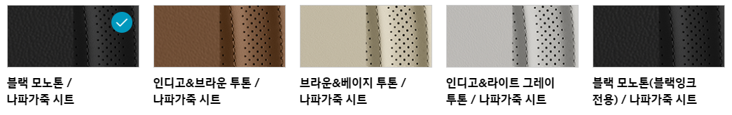 | 투톤 스트어링 휠 | 모노포스트 헤드레스트 | 나파가죽 시트 |