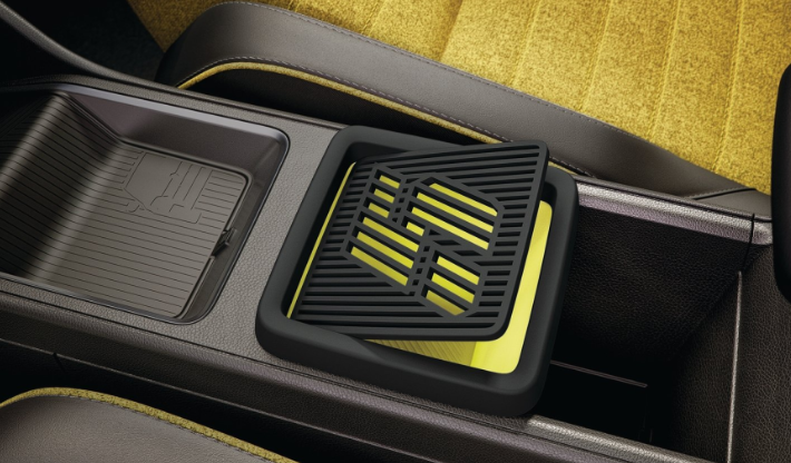 센터 콘솔 또한 3D 프린터 형태의 디자인이 적용되고 커스텀이 가능하여 개인의 취향을 매우 중요하게 생각하는 요즘 현대인들에게 디자인 선택의 폭의 다양성을 제공하는 르노5의 특징을 볼 수 있습니다.